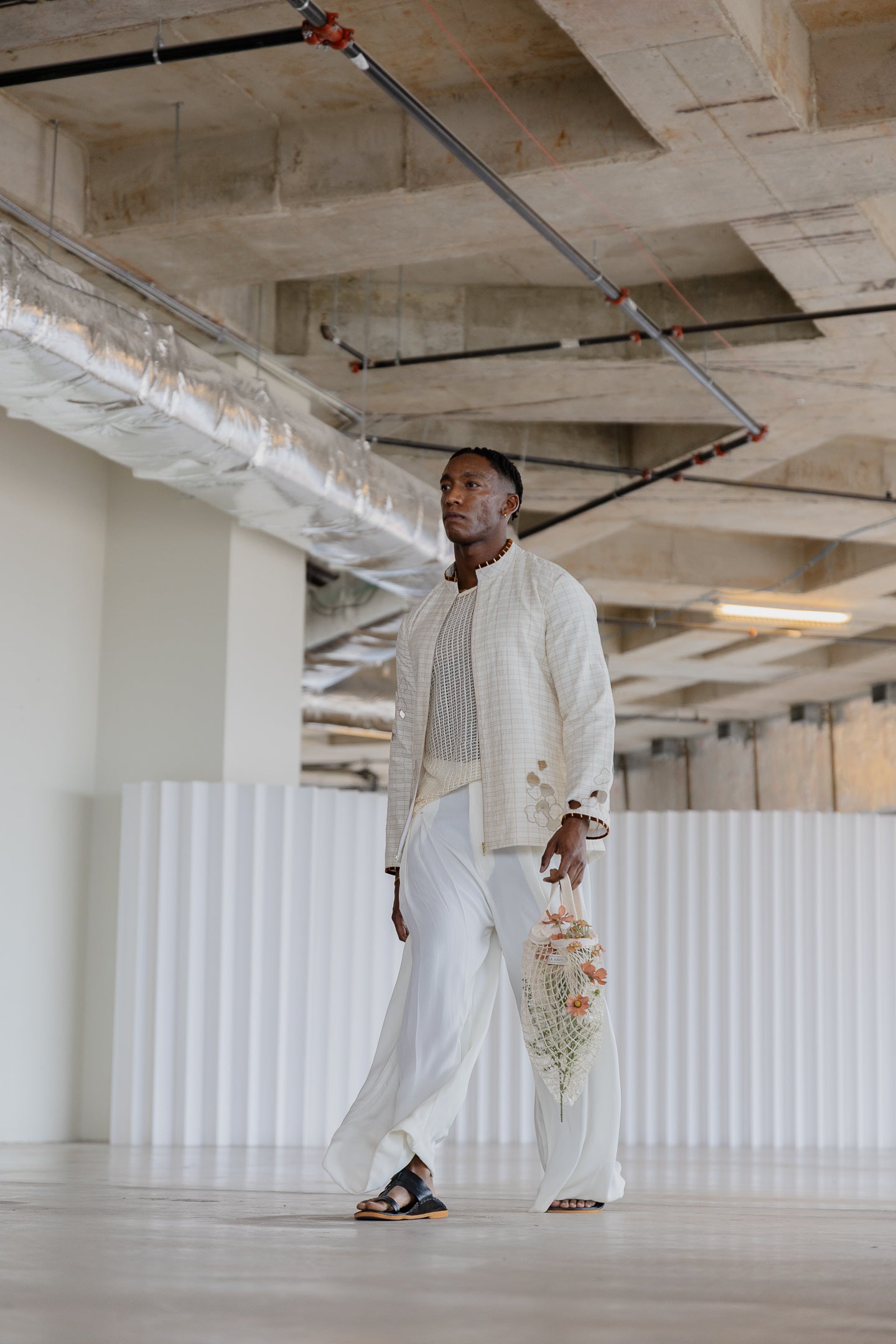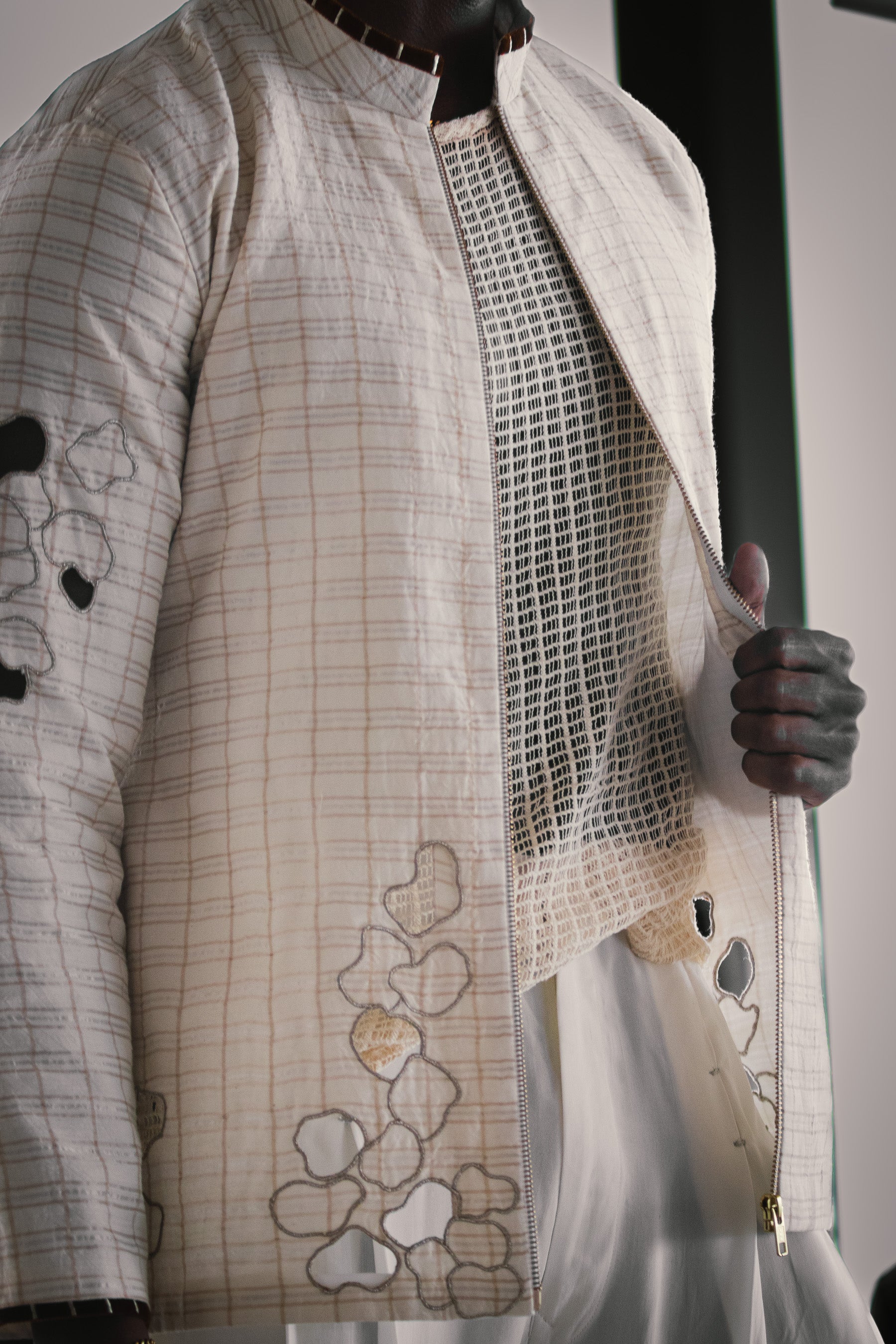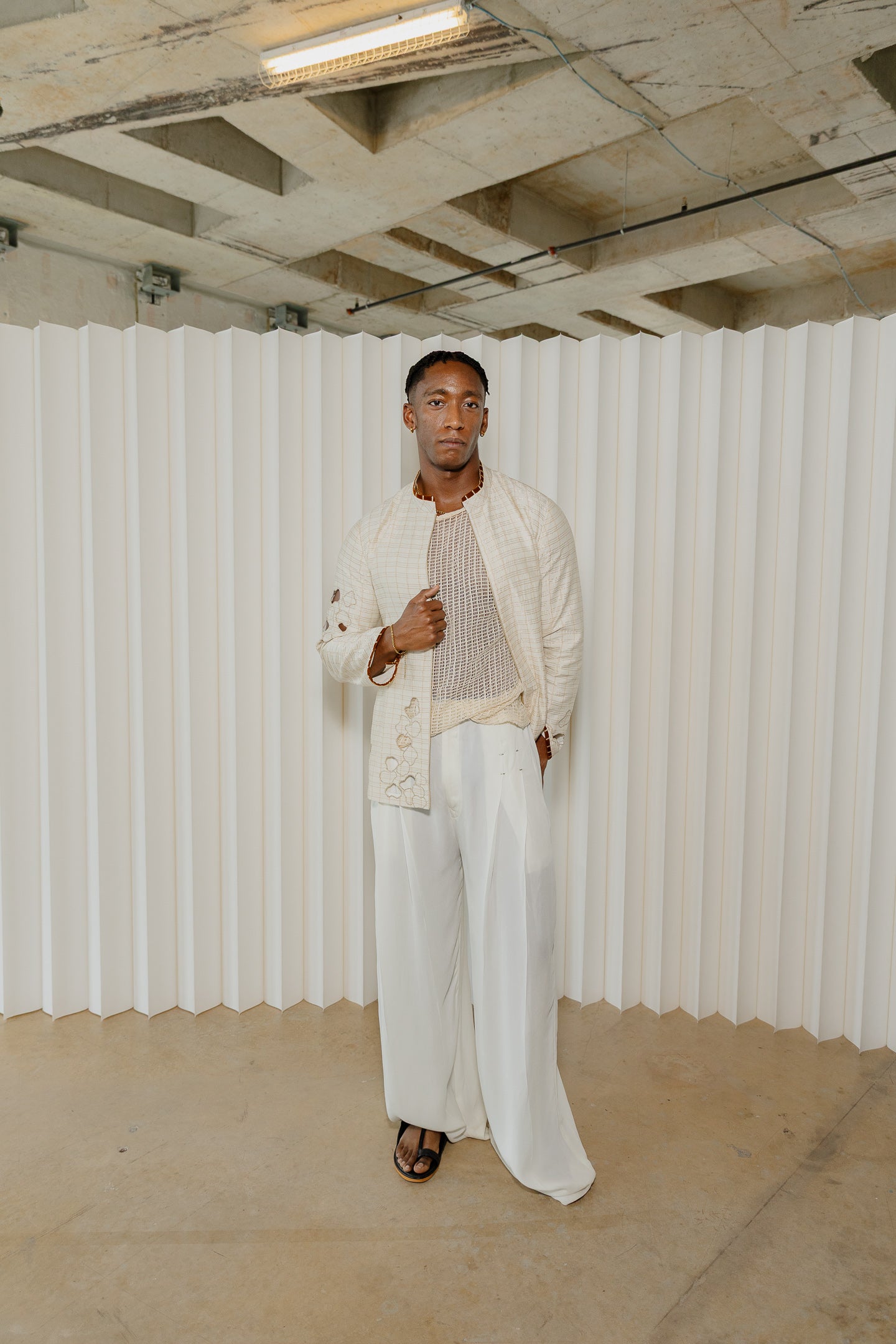 This 3 piece suit is inspired by the Coreopsis flower. The jacket is paired with a relax fit pants and a causual mesh tank.