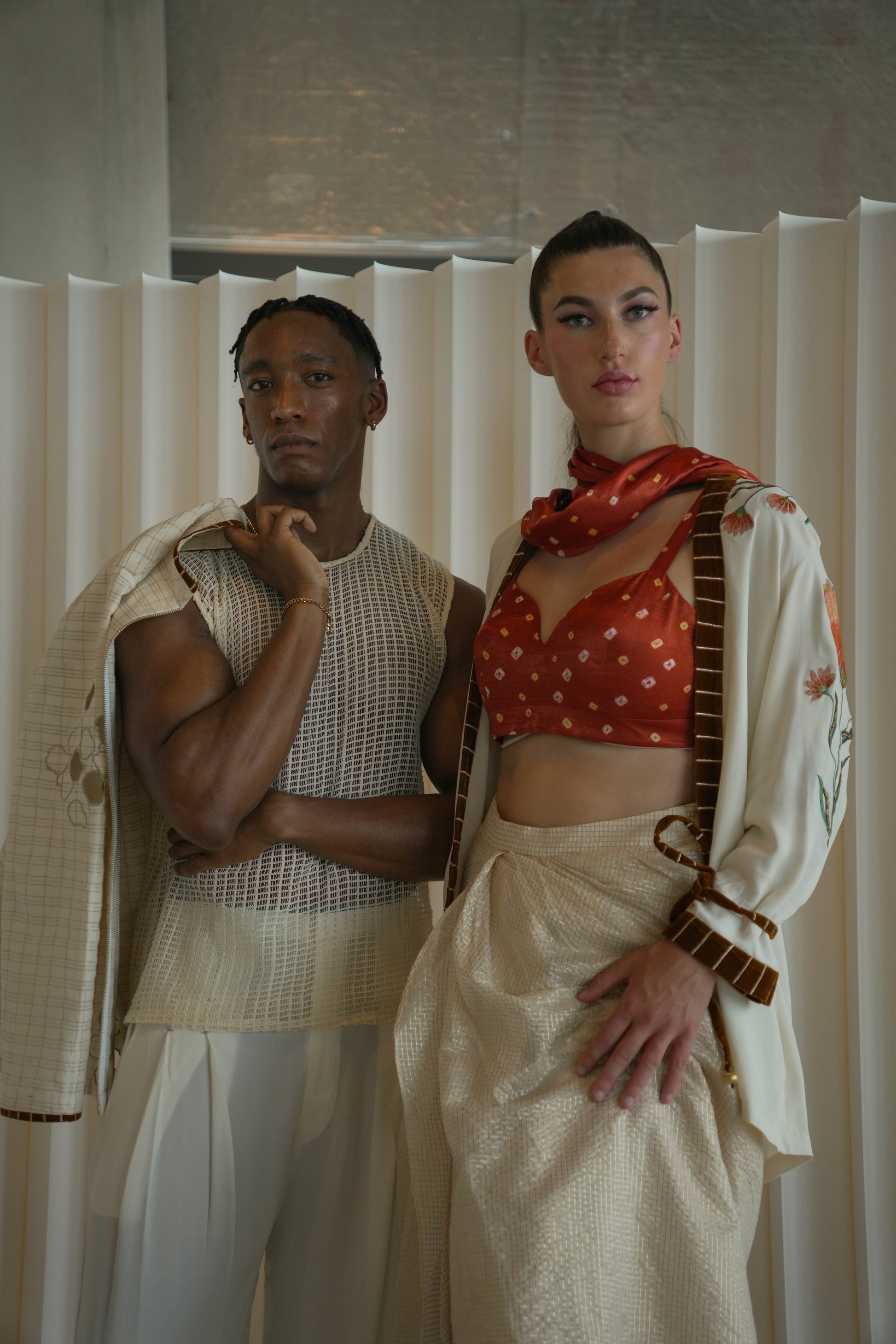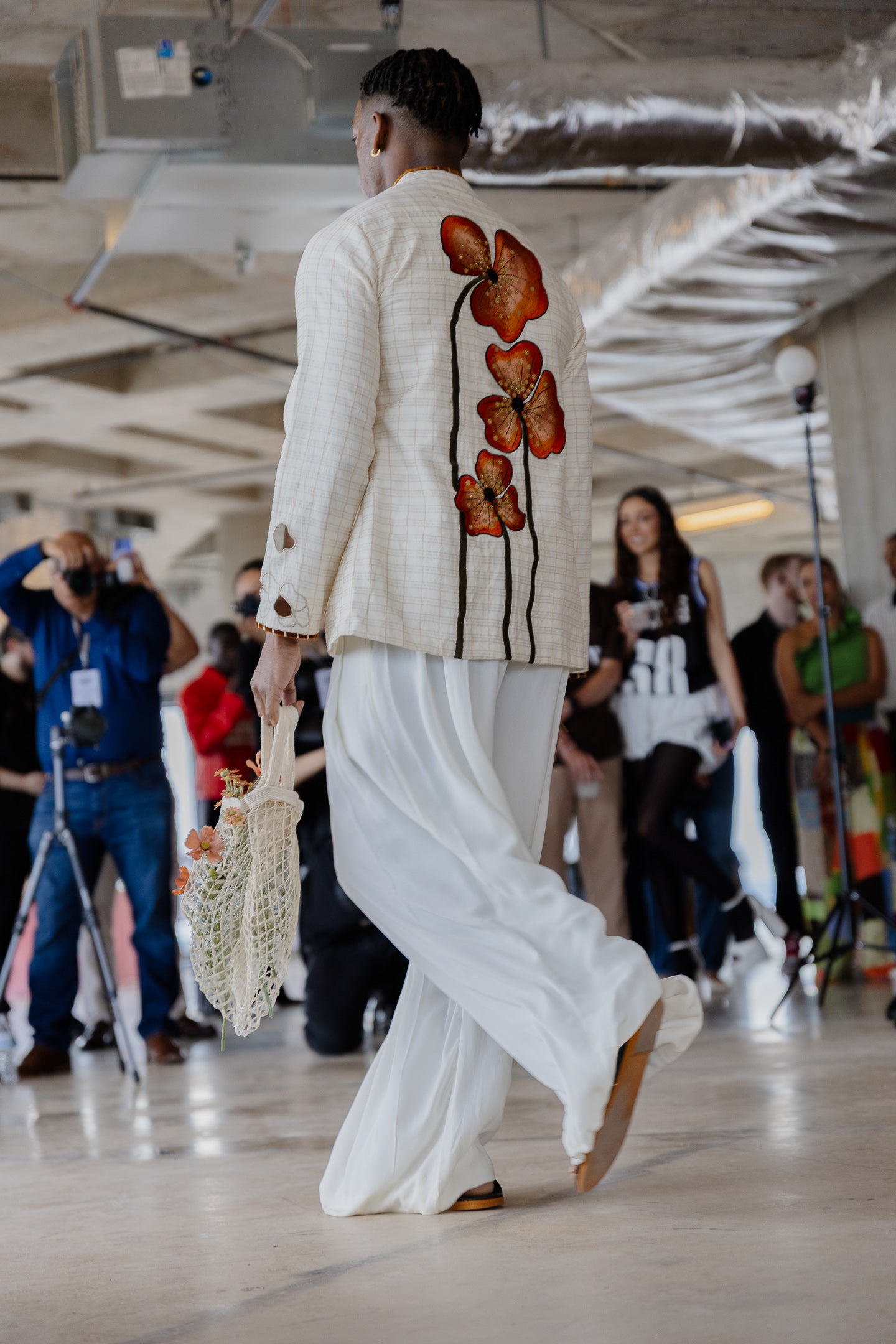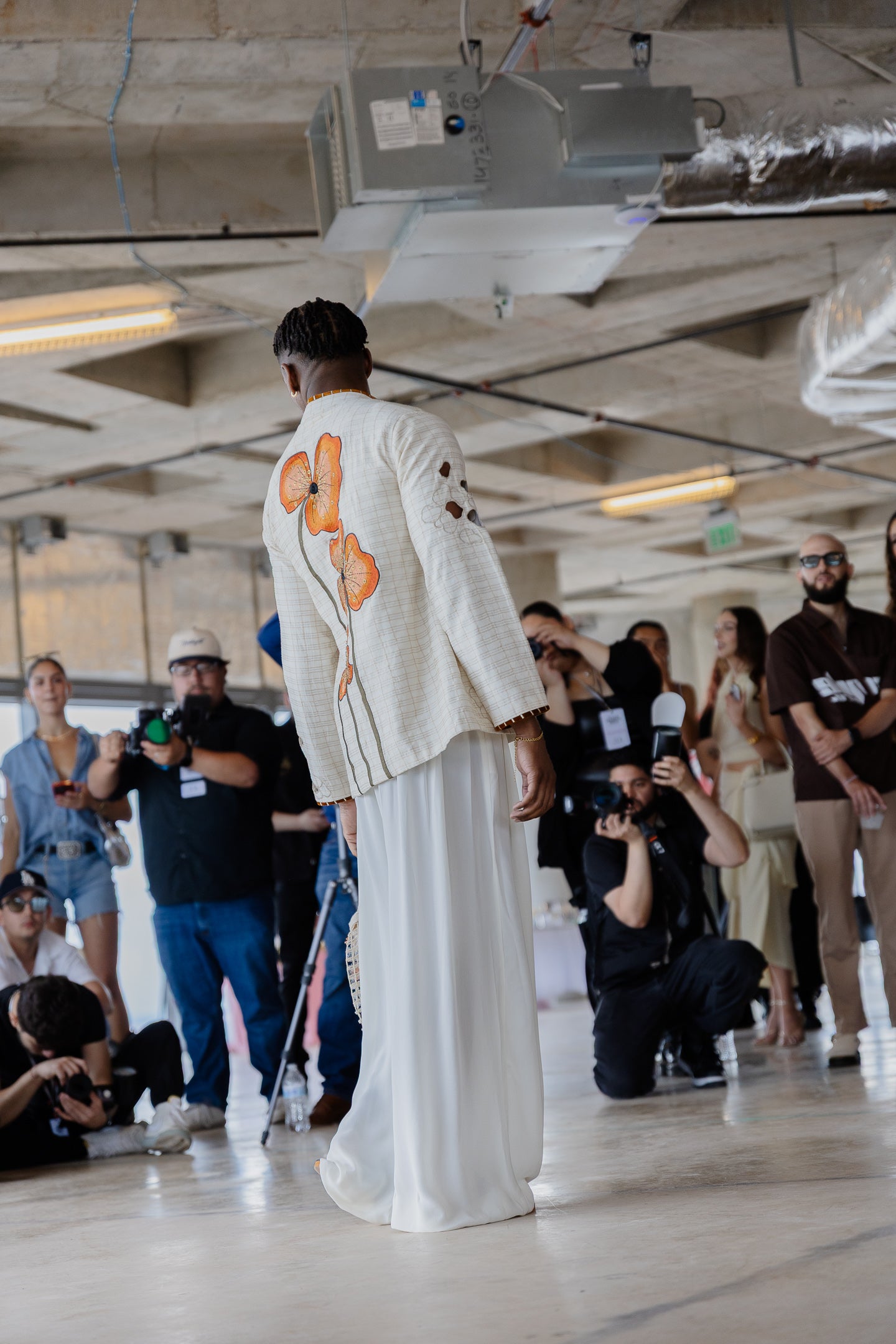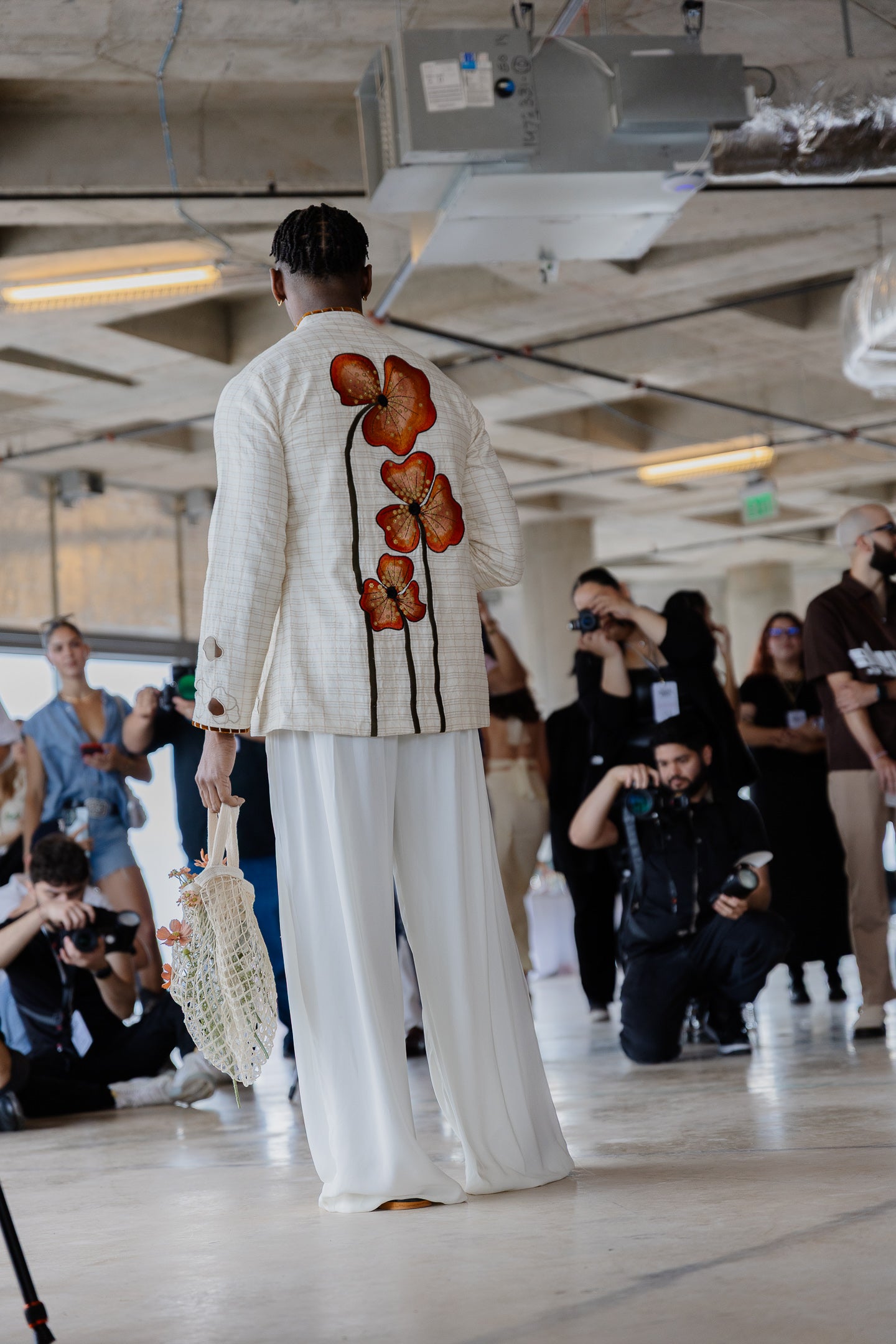 This 3 piece suit is inspired by the Coreopsis flower. The jacket is paired with a relax fit pants and a causual mesh tank.